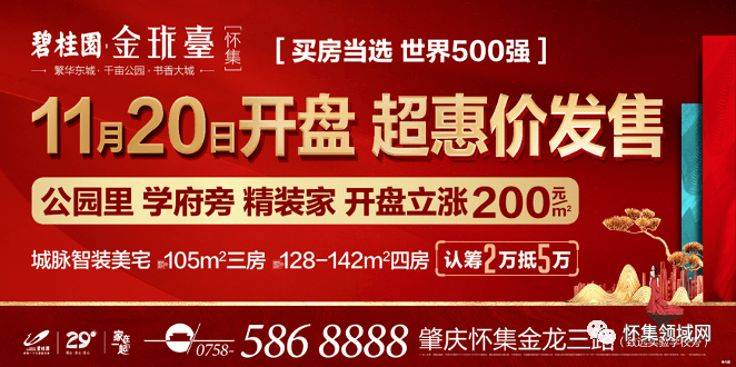 此次凭借29载筑城经验,还有“行稳致远”的战略定力和优秀的运营能力,以前瞻性的战略眼光再次布局肇庆,开启在怀集的11年进阶之路, 荣耀再续第四城——碧桂园金珑臺。