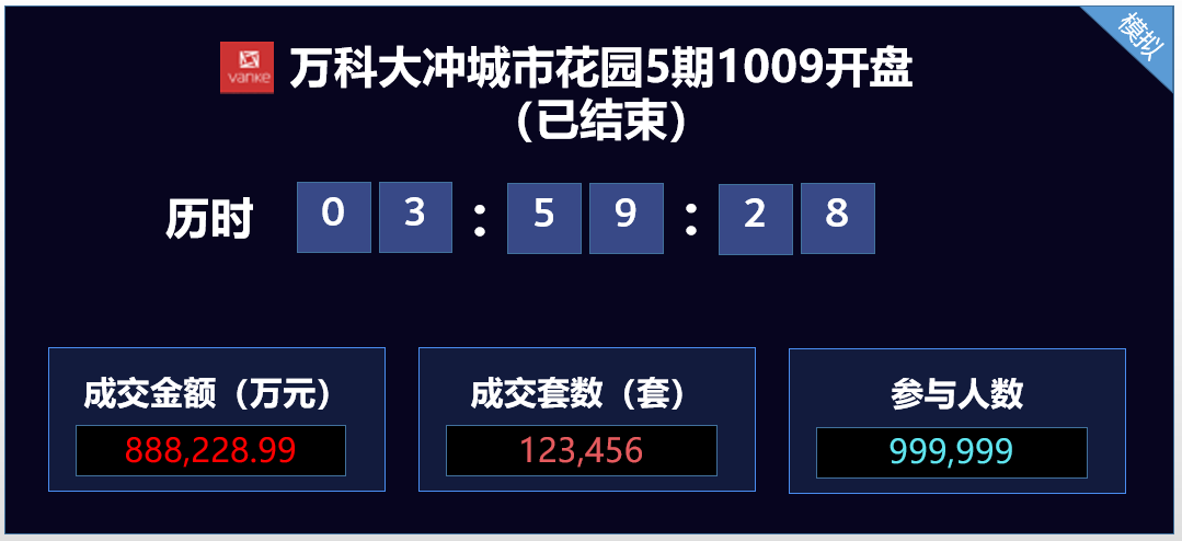 通过活动投屏,实时展示现场开盘情况和抢购信息,烘托购买气氛,便于供需双方了解实时情况,成交信息一目了然。